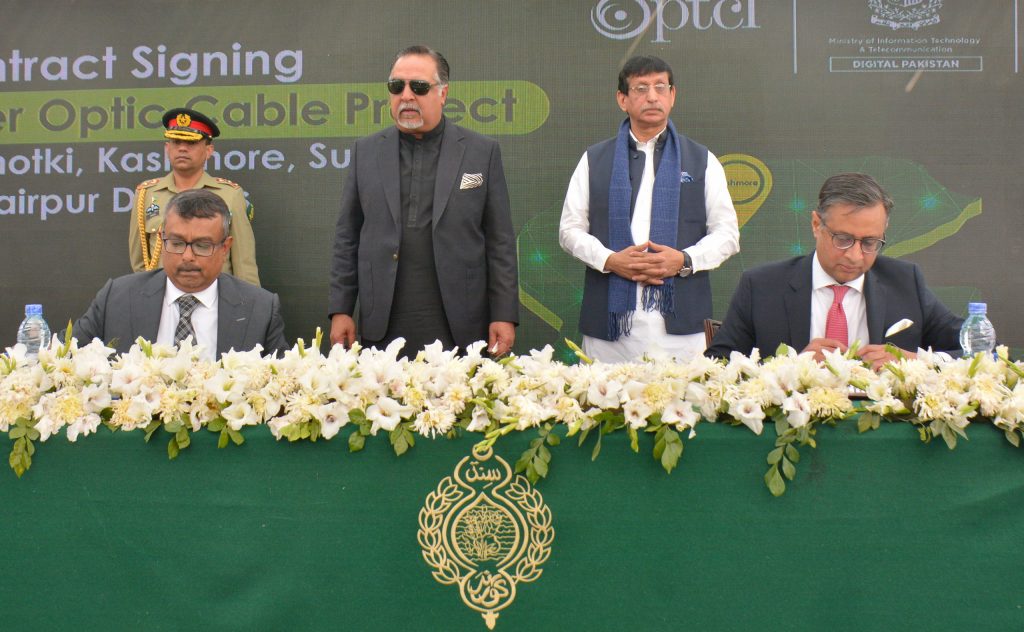 The Universal Service Fund (USF) awarded two Optic Fiber Cable (OFC) project contracts worth approximately PKR 3 Billion to Pakistan Telecommunication Company Limited (PTCL) for providing connectivity in Ghotki, Kashmore, Sukkur & Khairpur districts at a special ceremony held at Governor House, Karachi. Chief Guest of the ceremony, Imran Ismail, Governor of Sindh inaugurated the projects accompanied by Syed Amin Ul Haque, Federal Minister for Information Technology (IT) and Telecommunication. The contracts were signed by Haaris Mahmood Chaudhary, CEO, USF and Nadeem Khan, Acting CEO & Group Chief Financial Officer, PTCL. Senior officials of the Government of Sindh, Ministry of IT and Telecommunication, USF and PTCL were also present at the ceremony. On the occasion, Imran Ismail, Governor of Sindh said: “Today’s event marks another landmark achieved in the history of Pakistan and will go a long way in taking the developmental work being done by Government of Pakistan to a greater level. I also take today’s event as an opportunity to assure all of you that with consistent efforts and spirits, Ministry of IT and Telecommunication will continue to undertake more challenging and productive programs in the future, for the promotion of IT and Telecommunication related services. I would like to congratulate Federal Minister for IT and Telecommunication Syed Amin ul Haque, the dynamic teams of USF & PTCL on award of these projects that have been designed to connect 372 Educational Institutions, 170 Health Facilities, 217 Government Offices and 131 Banks within 5 KM radius of the node. I wish them all the very best for implementation of project objectives.” On the occasion, Syed Amin Ul Haque, Federal Minister for IT and Telecommunication said: “I believe that Imran Khan, Prime Minister of Pakistan, realizes the importance of information technology for the country as he envisioned Digital Pakistan and proved his commitment to turn this vision into reality. It affirms that when you have support from the premier, even bigger challenges can be turned into opportunities. With this renewed commitment, we took charge of this Ministry and of course, the new way of working to bring instrumental change was not visible to the people at the start of our journey as they did not expect such positive results so soon. However, we have proven ourselves as Pakistan Software Board’s export remittances has reached record level.” Syed Amin ul Haque lauded the great performance of Ministry of IT and Telecommunication and its affiliated organizations. Moreover, IT parks are being created across the country, along with Data Centers, policy on Cloud, cyber security, manufacturing of Smart phones and much more. The Federal Minister for IT and Telecommunication highlighted that Universal Service Fund’s innumerable projects of providing broadband services and laying optical fiber cables in rural and remote areas of the country is a testament of their undeniable performance. Summarizing these key initiatives and projects, he mentioned the tribal areas of Khyber Pakhtunkhwa (Ex-FATA) and the under-served areas of Balochistan that have witnessed record development projects worth PKR 8.81 Billion. These projects comprise of broadband and optical fiber cables in the under-served and remote areas of Chaghi, Nowshki, Gwadar, Kech and Panjgur, whereas various other projects have been approved for Jhelum and Chakwal, covering an area of 86,773 sq km. A total of PKR 4. 15 Billion is being invested for the provision of voice and broadband services for approx. 88,477 people. The Federal Minister emphasized that these Information and Communications Technology (ICT) projects ensure that we are concerned about the well-being of every citizen of Pakistan without any bias based on language, region or province. He reiterated his support and commitment for every resident of Pakistan. Furthermore, he added “If we had bias, we would never have initiated projects for Sindh including cities like Karachi, Hyderabad, Sukkur, Khairpur, Larkana, Ghotki and Kashmore, however, these are all our cities, being part of Pakistan, and we endeavor to provide the latest facilities to our people for a digitally connected world.” Speaking at the ceremony, Nadeem Khan, Acting CEO & Group Chief Financial Officer, PTCL said: “Being the national carrier, PTCL is the backbone of country’s communication infrastructure and primary internet service provider. We serve people of Pakistan from large metropolitan cities to remote rural areas. We are glad to collaborate with USF for establishment and operation of optical fiber connectivity in Ghotki, Kashmore, Sukkur and Khairpur districts. Aligned with the vision of a Digital Pakistan, we are committed to play our role in supporting the underserved communities and empower them for a better future.” While sharing his views at the ceremony, Haaris Mahmood Chaudhary, CEO, USF said: “I take the opportunity to say here that all these achievements have only been possible due to constant efforts of the Government of Pakistan. Federal Minister and Secretary for IT and Telecommunication have been torchbearers of the vision for a “Digital Pakistan” and have enabled USF to transform the lives of people of the country. They have given us tremendous cooperation, help and support, without which all this could not be achieved. I also want to congratulate the very hard-working team of PTCL, who are being awarded the projects worth PKR 03 Billion that aim at laying of 1,078 km of optic fiber cable to connect 140 unserved Union Councils & Towns, benefitting a population of around 4.7 Million people. I am also very proud of my team at USF who has done its best to make these projects successful.” Moreover, these projects will not only provide a digital highway for seamless broadband coverage to people residing in Ghotki, Kashmore, Sukkur and Khairpur Districts but also improve the lives of people, create job