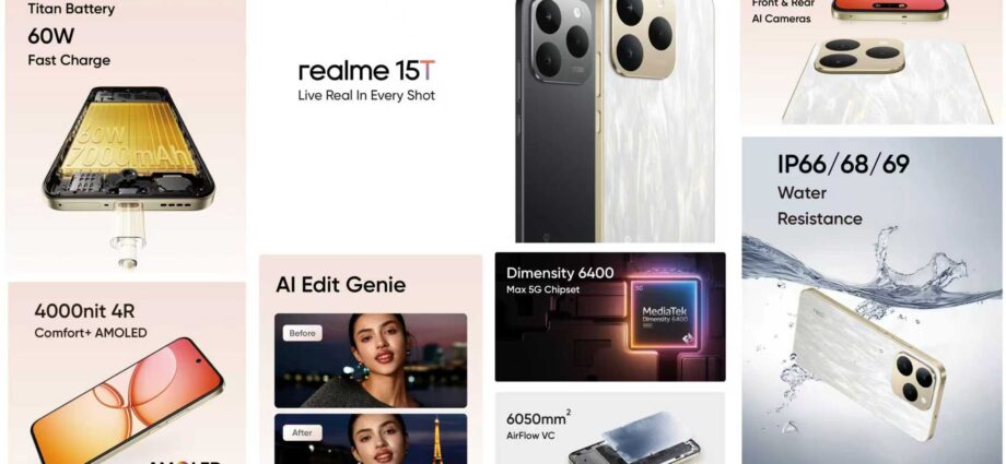 The realme 15T redefines compact power with its sleek, lightweight rPhone design, featuring a screen even more compact than the iPhone. Powered by the Dimensity 6400 Max 5G chipset and a 7000mAh Titan Battery, it delivers flagship-level performance, endurance, and efficiency. With the segment’s only 50MP front and rear AI cameras, advanced cooling, and water resistance, the realme 15T combines portability, performance, and style, offering a complete AI Party Phone experience at just PKR 79,999.