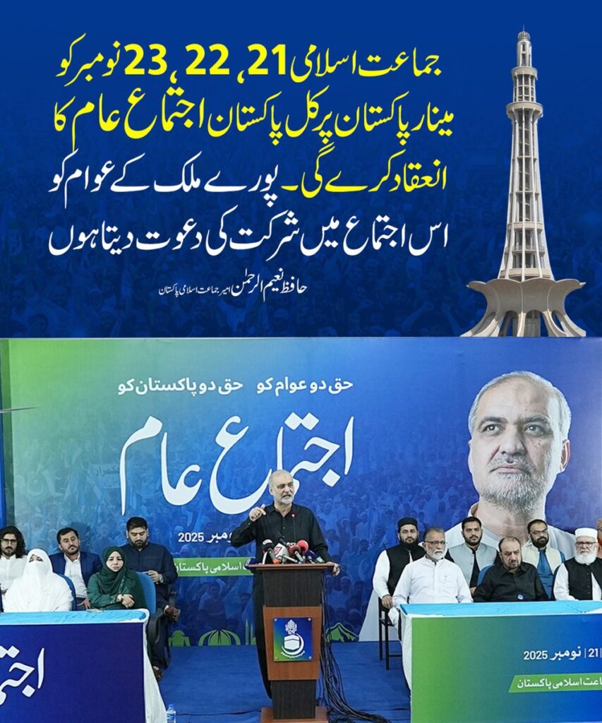 JI Emir Hafiz Naeemur Rehman said the Ijtema would mark the beginning of a nationwide peaceful movement for the transformation of the existing corrupt system, serving as a message of hope for the nation and a voice for the Muslim Ummah. He directed party workers to ensure the message and invitation of the Ijtema reach millions of people across the country.