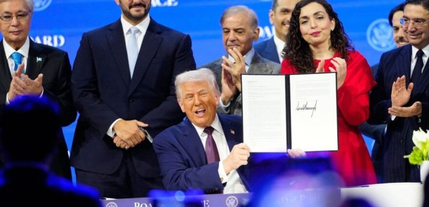 Leaders and senior officials from Argentina, Armenia, Azerbaijan, Bahrain, Bulgaria, Hungary, Indonesia, Jordan, Kazakhstan, Kosovo, Mongolia, Morocco, Paraguay, Qatar, Saudi Arabia, Turkiye, the UAE, and Uzbekistan signed the charter alongside Trump. Permanent members are required to pay $1 billion to join, drawing criticism that the board could become a “pay to play” version of the UN Security Council.