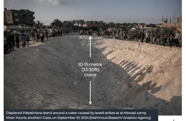 - BLU-109 bunker buster: Used in an attack on al-Mawasi, an area Israel had declared a “safe zone” for forcibly displaced Palestinians in September 2024, this bomb evaporated 22 people. It has a steel casing and a delayed fuse, burying itself before detonating a PBXN-109 explosive mix. This creates a large fireball inside enclosed spaces, incinerating everything within reach.